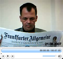 Am Anfang steht der Kundennutzen, die Kosten müssen niedriger sein als die Erlöse, die Zahlen transparent.Es gilt, liquide zu bleiben und für die wichtigsten Aufgaben die richtigen Fachleute an Bord zu haben. Roland Berger Blick-Wechsel: Eine Filmdokumentation mit Zukunftsperspektiven 20.08.2007 Wohin ich auch komme und mit wem ich auch spreche: Ein Wandel unserer Lebens- und Arbeitswelt ist überall erlebbar. Jedoch nutzt allein die Erkenntnis, daß sich unsere Gesellschafts- und Wirtschaftsordnung in einem umfassenden Veränderungsprozeß befindet, dem Einzelnen wenig. Die Feststellung dieser Tatsache ermächtigt noch nicht zu eigenständigen und konstruktiven Beiträgen zur Neugestaltung. Das Filmprojekt »Blick-Wechsel« soll hier Lösungsansätze aufbereiten. Die Arbeit beginnt mit der Sammlung einzelner Videosequenzen, dem Entwurf eines Drehbuchs und der Veröffentlichung an dieser Stelle. Schritt um Schritt soll sich so das Material verdichten. Diese Arbeit geschieht hier "halböffentlich", um Intersessenten am Projekt einen Einblick und die Möglichkeit zur Einwirkung zu öffen.